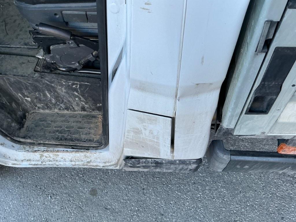 Pont arrière maillé, ridelles et faux chassis pliés. Panneau de cabine arrière pied de cabine arrière gauche enfoncés, pare-chocs arr plié, feu arrd cassé.