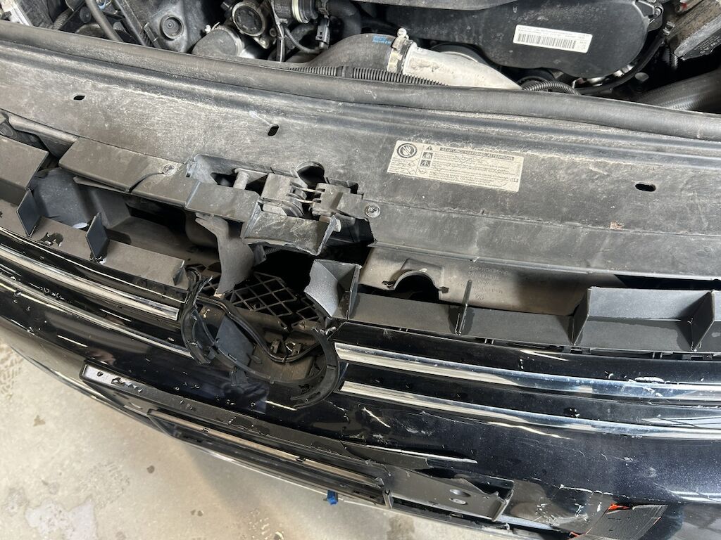 Frontschaden, Stossfänger, beide Scheinwerfer und Kühlergrill gebrochen, Motorhaube, Kühler und Querträger deformiert, Schadenbeschreib nicht abschliessend Motor Getriebe Vorderachse Hinterachse Airbags ausgelöst: 0 unbekannt ( Abfallcode 16.01.04ak )