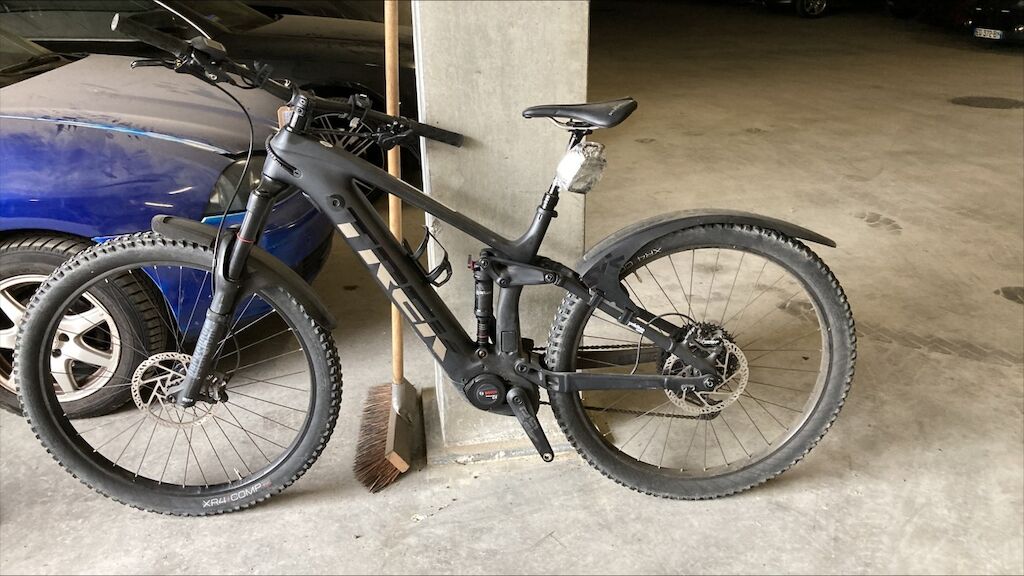 Vélo volé et retrouvé, cadre, pédalier, derailleur, fourche griffés, chaîne rouillée, poignée du guidon droite marquée. Etat du moteur et de la transmission pas contrôlables. Motor Getriebe Vorderachse Hinterachse Airbags ausgelöst: 0 Nein ( Abfallcode 16.01.04ak )