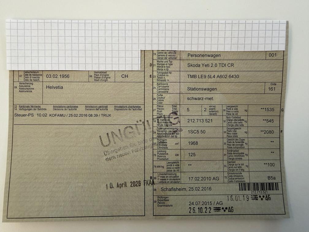Fahrzeug aus erster Hand, wurde dazumals durch uns ausgeliefert und immer gemäss Wartungsplan bei uns gewartet. Wechsel fand aufgrund Wechsel auf Elektromobilität statt. Am Fahrzeug sind keine technischen Mängel bekannt, wurde jetzt aber nicht separat geprüft. Partikelfilter wurde gemessen und ist in Ordnung. Fahrzeug kann während der Auktion bei uns angeschaut werden. Kein Tier oder Rauchgeruch im Fahrzeug. Am Fahrzeug wurde kein Werkstatttest gemacht (Für sichtbare oder nicht sichtbare Mängel wird nicht gehaftet). Wir testen & kontrollieren nicht alle Funktionen vom Fahrzeug. Das Risiko liegt somit vollumfänglich beim Käufer. Um Missverständnisse zu vermeiden kann das Fahrzeug auf Voranmeldung besichtigt & getestet werden, sollten Sie davon bewusst kein Gebrauch machen dann liegt die Verantwortung bei Ihnen. Nachdem der Höchstbietende den Zuschlag erhalten hat, gibt es keine Nachverhandlung, auch wenn nicht deklarierte Mängel zum Vorschein kommen sollten. Ab Platz ohne Garantie, Wandelung und Minderung werden wegbedungen.