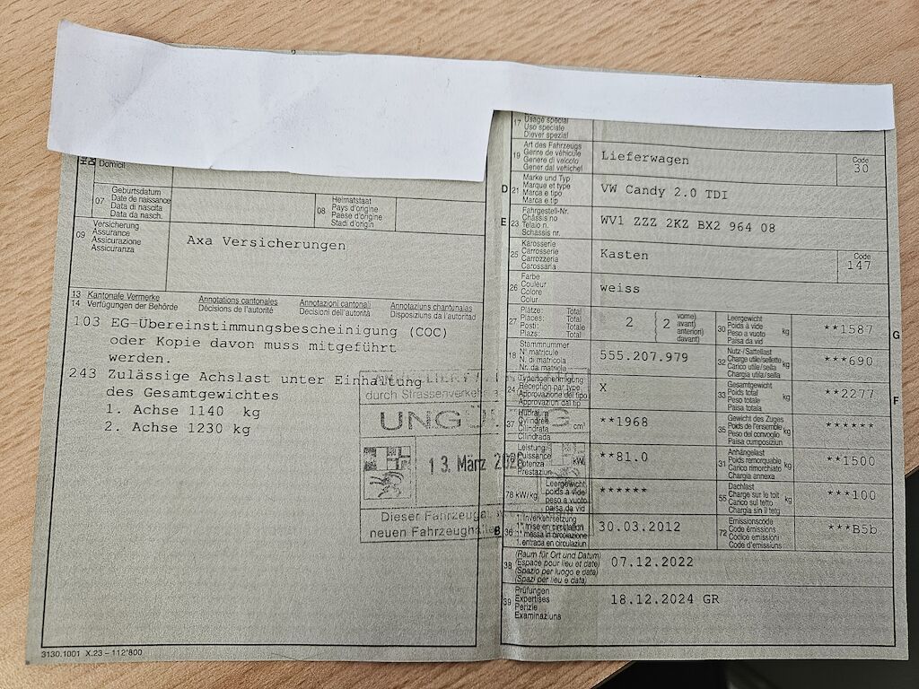 Anhängerkupplung wurde demontiert.1. Fahrzeugkauf auf eigenes Risiko ab Platz ohne Garantie und ohne Nachwährschaft. Die Gewährleistung für Sachmängel wird wegbedungen. Keine Nachverhandlung.2. Zahlungsfrist max 5 Tage per Überweisung oder im Bar.3. Abholfrist max 14 Tage, ansonsten werden weitere Kosten verrechnet – 20.- CHF netto pro Tag.Zahlungsverzögerungsgebühr: 18.- CHF netto / Werktag.