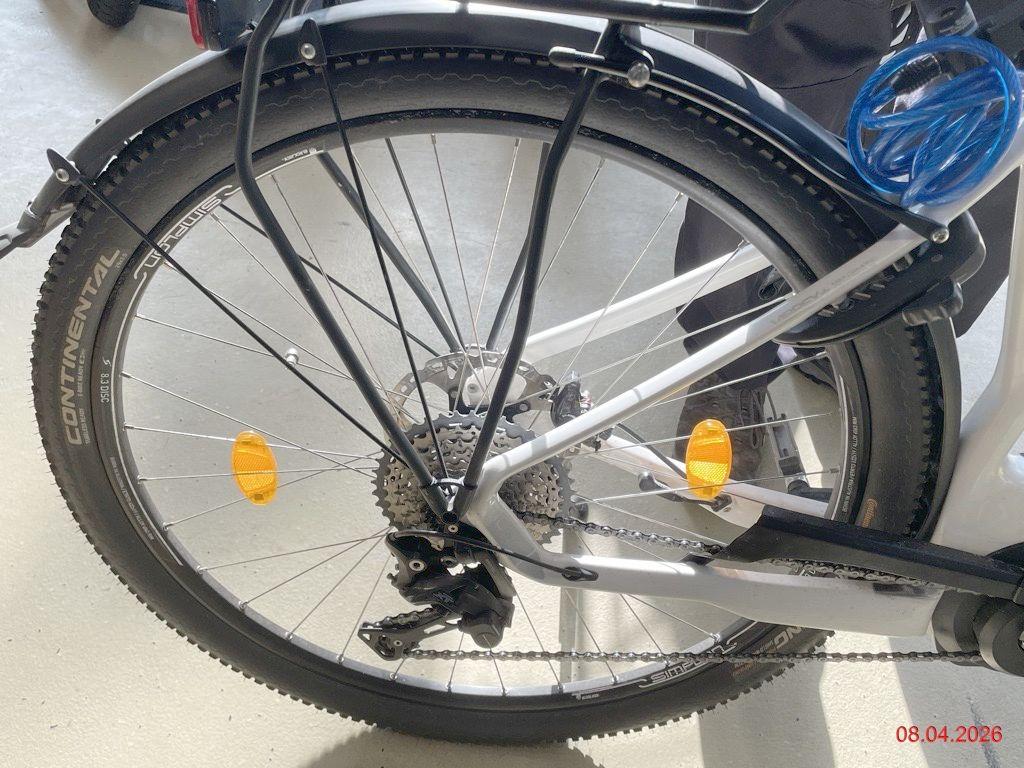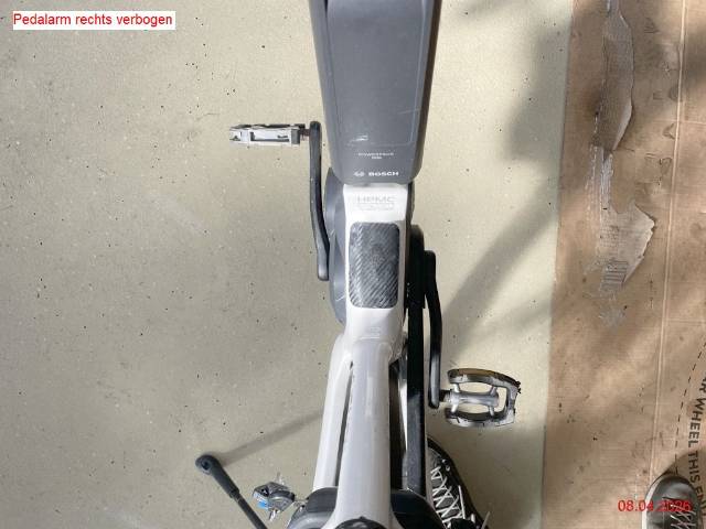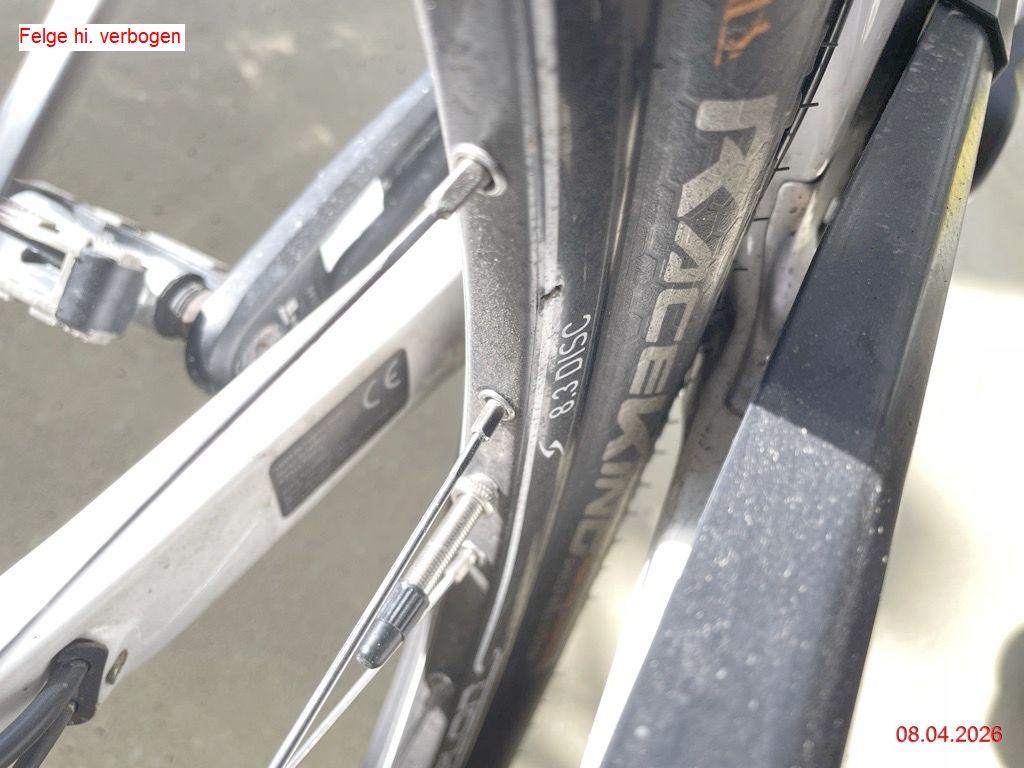 Gabel vorne Kratzer, div. Lenkeranbauteile rechts zerkratzt, Rahmen Kratzer, Batterie Kratzer (Aus-/Einbau der Batterie geht streng -> Aufnahme verformt), Pedalarm rechts verformt und Pedale zerkratzt (Risiko Lager Motor), Kettenspanner zerkratzt, Felge hinten verbogen, Gepäckträger zerkratzt