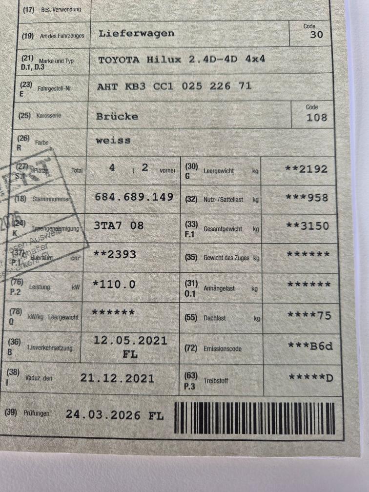 TOYOTA Hilux 2.4D-4D 4x4 frisch ab MFK