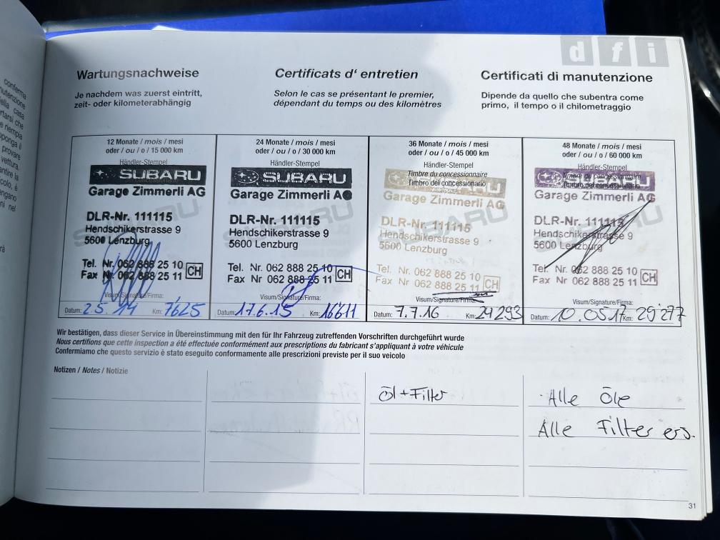 Gepflegtes Fahrzeug, Service immer bei Subaru Garage Kein Werkstattest durchgeführt Preisvorstellung Kunde. 14'000.-