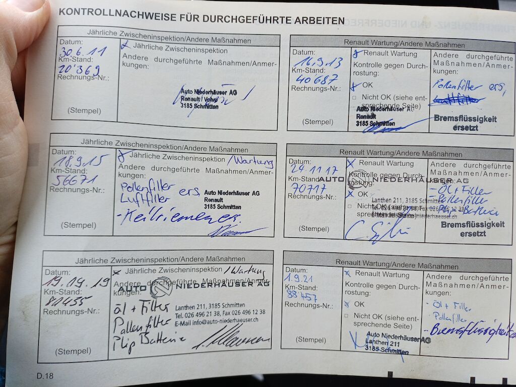 Flecken im Innenraum, Luftauslass Fahrer links angeklebt, Radkappen angefahren, Sicherheitsgurt Fahrerseite unten leicht ausgefranst, letzter Service 2023, Fahrzeug ab Platz, ohne Garantie und Aufbereitung. Diverse Schäden an Karosserie/Lack. Keine technische Prüfung (Werkstatttest) vorgenommen.Schaden Stossfänger vorn