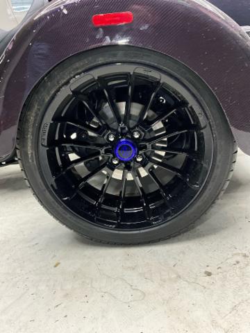 Speziell lackierte Räder, Vorderer Kotflügel aus Carbon, zwei hintere Kotflügel aus Carbon, Kurze schwarze Windschutzscheibe, Custom-Griffstücke, Spiegel in Black Piano