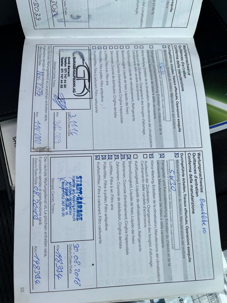 Fällig: -MFK -Service -Kupplung funktioniert, FZ ist fahrbar aber müsste langfristig ersetzt werden. -starter im 2024 ersetzt -auspuffendrohr repariert im märz 2025 -mikrofon eingebaut für freisprechanlage -FZ hat keine technischen MFK Mängel, ist eingelöst. -Abholung bis 20.04.26 in Bonaduz (GR)