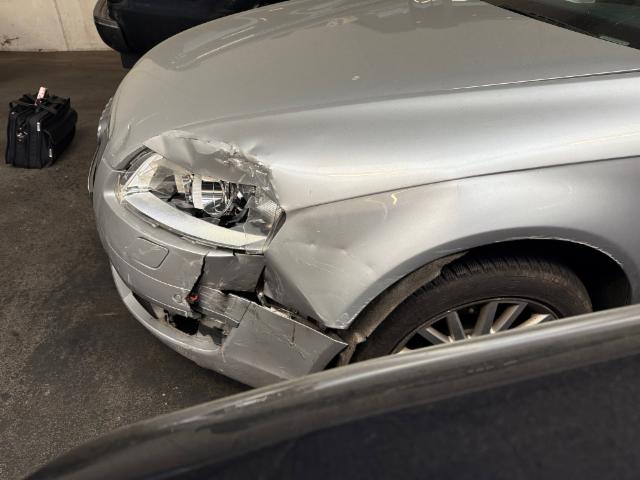 Front links eingedrückt. Fahrzeugvorbau nach rechts verschoben.