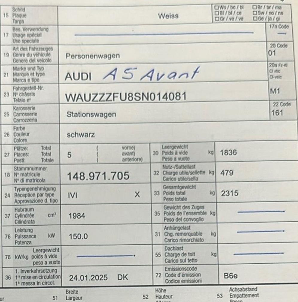 Optionale Ausstattung Adaptiver Fahrassistent plus Audi Phone Box Metallic-Lackierung Pack Exterieur S-Line Vorbereitung für Anhängevorrichtung Das Fahrzeug wird im aktuellen Zustand („ab Platz“) und ohne jegliche Garantie verkauft. Fahrzeug hat seinem Alter nach Gebrauchspuren , läuft einwandfrei. Es wurde keine umfassende mechanische oder technische Prüfung durch den Verkäufer durchgeführt. Das angebotene Fahrzeug befindet sich in gebrauchtem Zustand Jegliche Gewährleistung für sichtbare und unsichtbare Mängel wird, soweit gesetzlich zulässig, ausdrücklich ausgeschlossen.