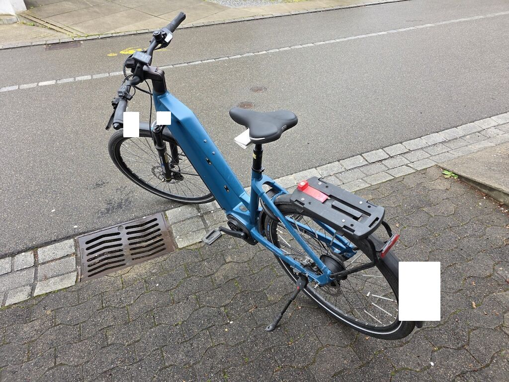 Seitenschaden rechts: Lenkergummi li/re, Bremshebel li/re, Rad vo, Federgabel vo, Rahmen, Pedal re, Sattel, Gepäckträger, Ständer beschädigt, etc. und Rahmen verzogen Motor Getriebe Vorderachse Hinterachse Airbags ausgelöst: 0 unbekannt ( Abfallcode 16.01.04ak )