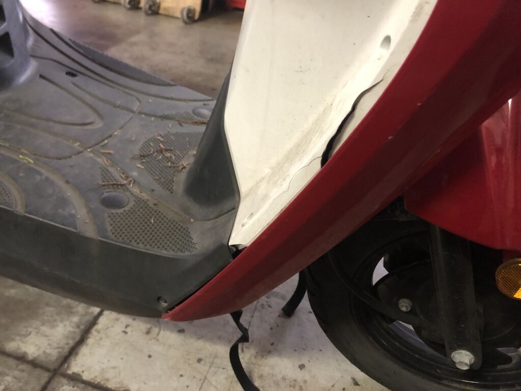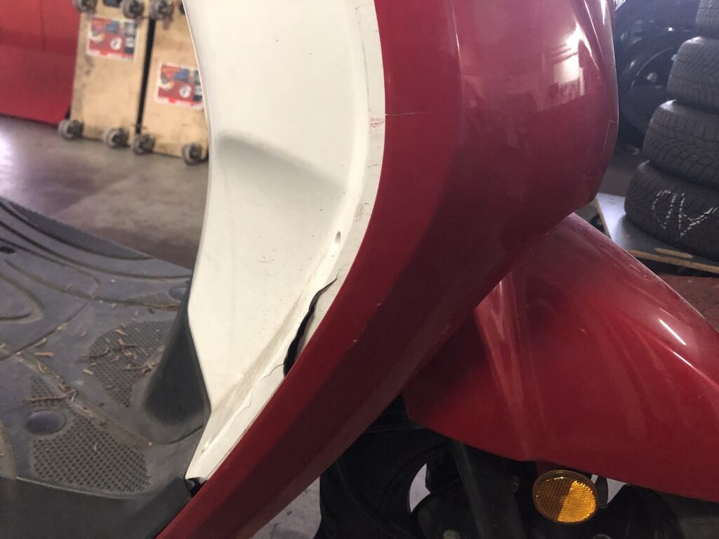 Danno da collisione su fianco dx. Lacerato carena post. dx, carena frontale, parafango , pedana e riv. interno ant.. Protezione calore scarico. Motor Getriebe Vorderachse Hinterachse Airbags ausgelöst: 0 unbekannt ( Abfallcode 16.01.04ak )