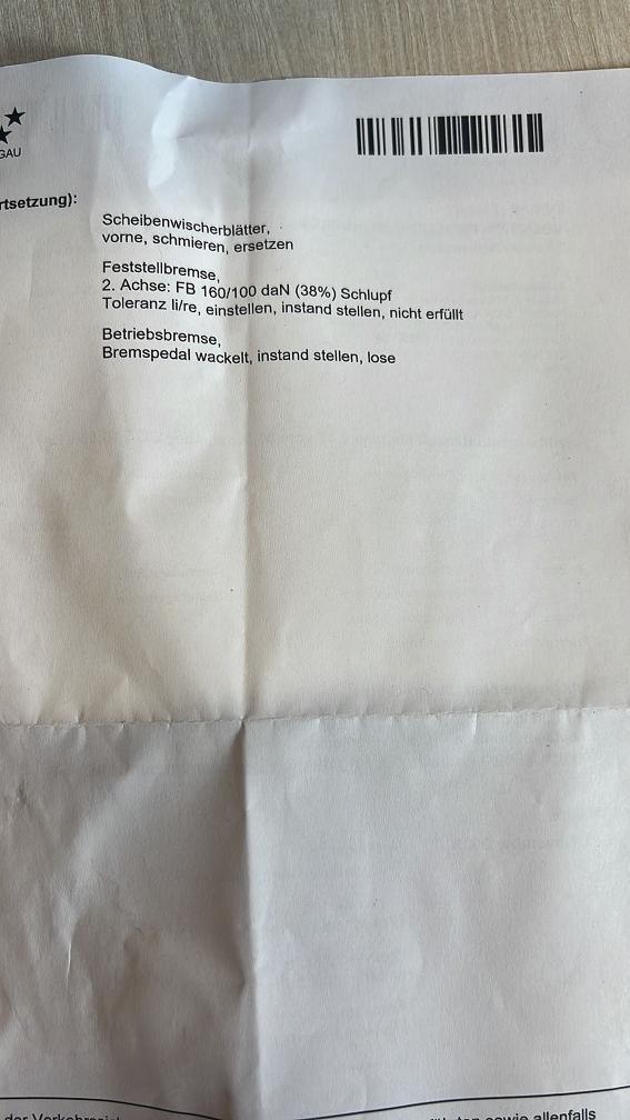 Diverse MFK Mängeln (siehe Beanstandung-Foto) Ab Platz ohne Garantie