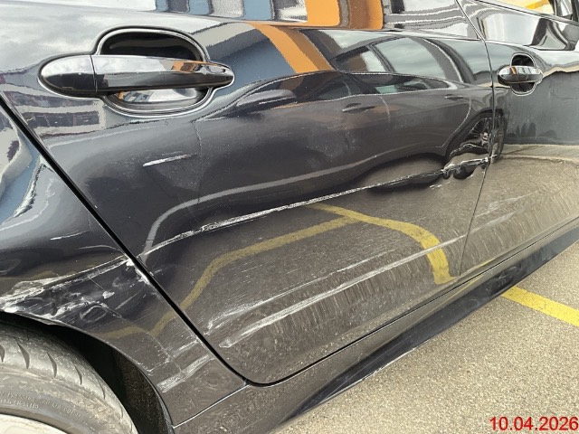 Schaden rechte Seite. Türe vorne deformiert, Türe hinten deformiert, Seitenwand / Kniestück hinten deformiert, Stossfänger hinten Kratzer, Schwellerverkleidung Kratzer, Felge hinten Kratzer / Streifspuren. Risiko Radaufhängung hinten rechts. Soft Close Automatik hinten rechts funktioniert nicht. Weitere Schäden möglich, Fahrzeug wurde zur Schadenermittlung nicht vermessen oder zerlegt. / Vorbestandene Schäden: Vorne links: Stossfänger Streifspuren. Hinten links: Seitenwand und Türe Dellen. Gebrauchsspuren