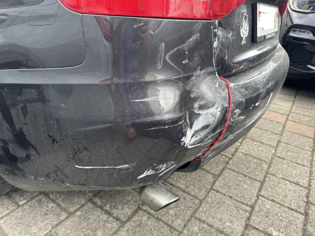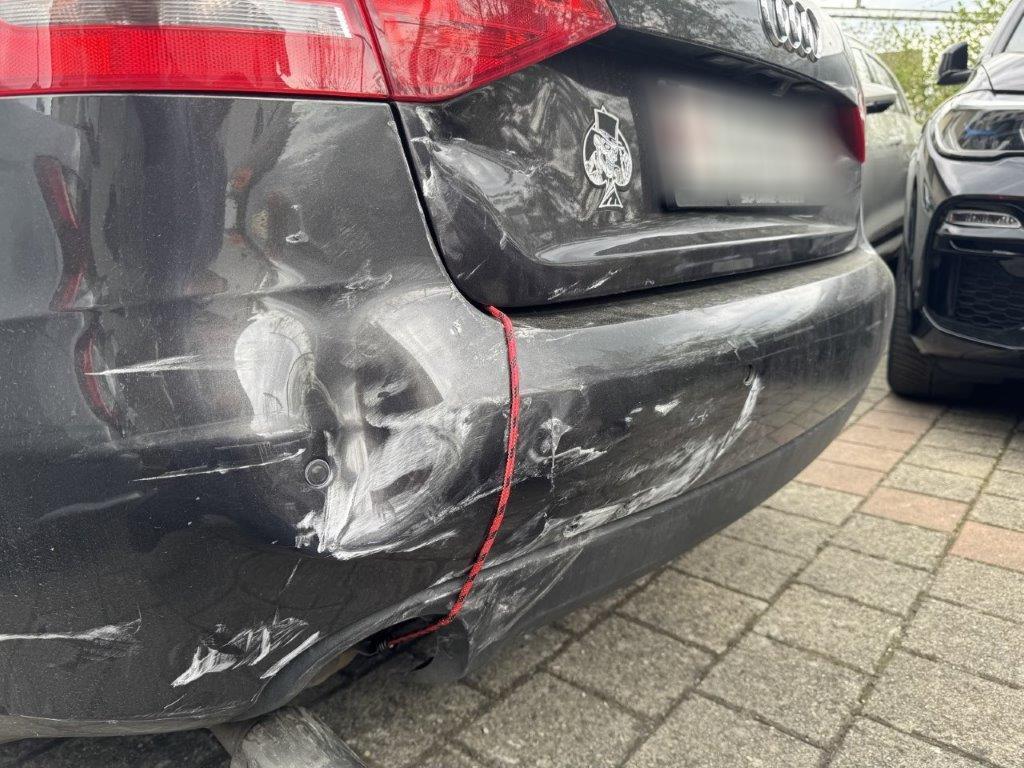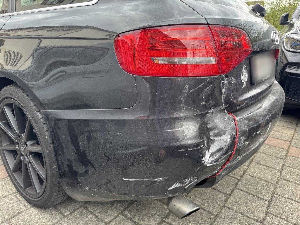Stossstange hinten und deren Halter zerbrochen. Heckklappe gestaucht. Heckleuchte links innen zerbrochen. Heckblech eingedellt und verbogen. Endschalldämpfer und Auspuffanlage verbogen und gestaucht. Diverse Carrosserieteile leicht beschädigt.