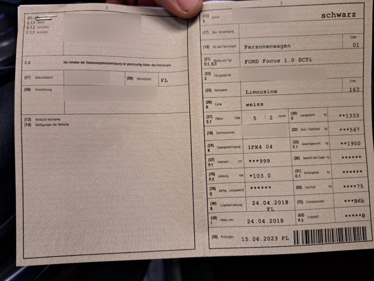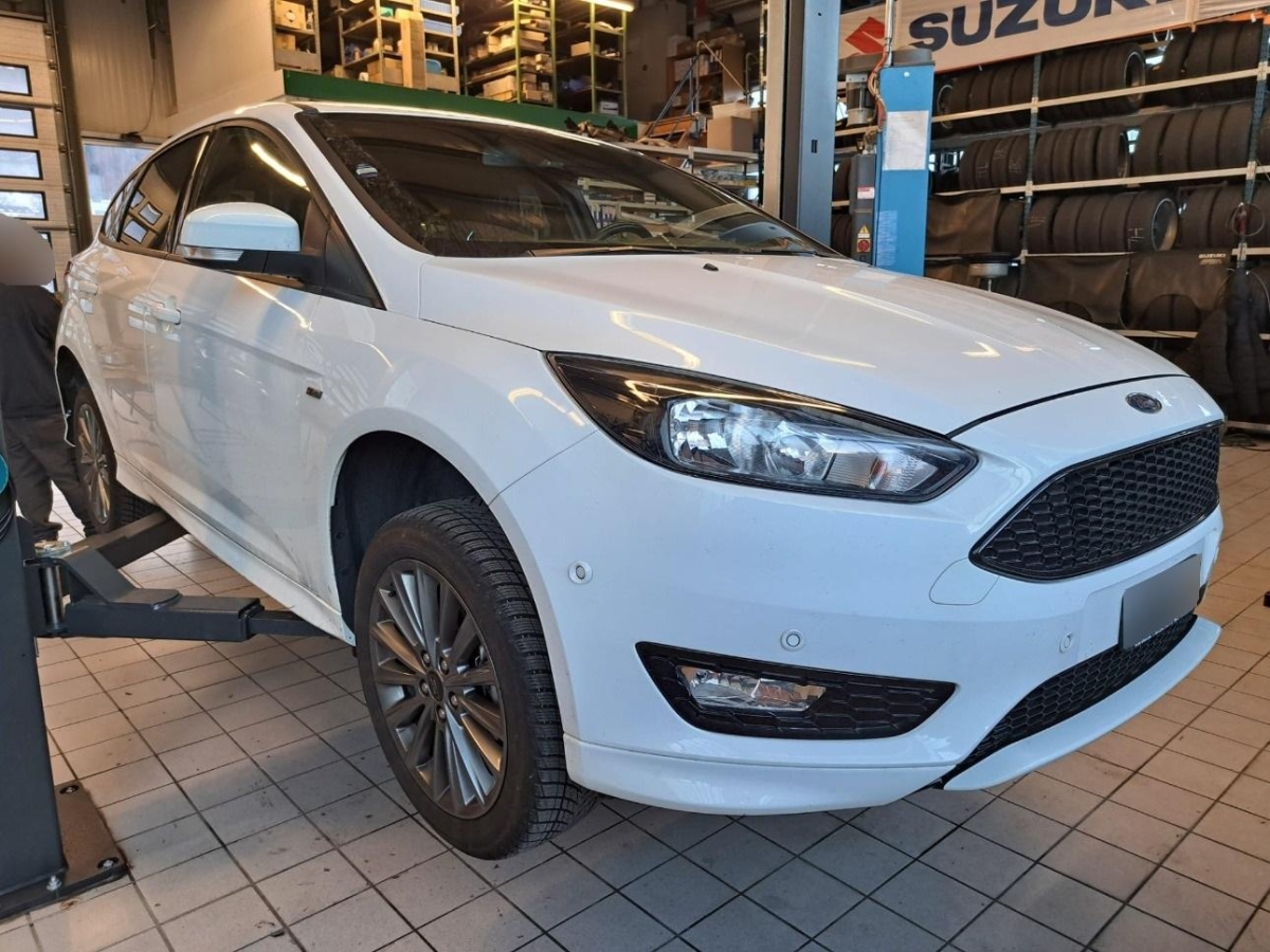 Bordcomputer, Airbag: Fahrer und Beifahrer, Laderaumabdeckung, Türgriffe aussen in Wagenfarbe, 3-Punkt-Sicherheitsgurte auf allen Plätzen, Lackierung: Uni-Lackierung, Einstiegsschienen mit Logo, Warnblinkautomatik bei Vollbremsung, Airbag: Seitenairbag für Fahrer und Beifahrer, Klima: Pollenfilter (Staubfilter), Innenraumbeleuchtung, Berganfahrhilfe (Hill Holder), Heckspoiler in Wagenfarbe, Licht: Halogenscheinwerfer, Wegfahrsperre elektronisch, ABS, EBD elektronische Bremskraftverteilung, Kartentasche an der Rückenlehne, Teppichfussmatten vorne, Höhenverstellbare Gurten vorne, Media: Digitaler Radioempfang (DAB/DAB+), Klima: Zuheizer, Räder: TPMS Reifendrucküberwachungssystem, Airbag: Window-Kopfairbags, Getönte Scheiben, Ford Power Start, Mittelkonsole, Licht: LED-Tagfahrlicht, Licht: Nebelscheinwerfer, Elektronisches Sicherheits- und Stabilitätsprogramm (ESP), Seitenschweller schwarz genarbt, Licht: Drittes Bremslicht, Sicherheitslenksäule, Servolenkung, Klima: Klimaanlage, 2 Zündschlüssel (1 klappbar), Aussenspiegel elektrisch verstellbar, Sitze: Rücksitzlehne geteilt abklappbar, Staufach vorne in der Mittelkonsole, Polster: Stoff-Ausstattung, Licht: Nebelschlussleuchte, Sitze: Sportsitze vorne, Scheibenwischer vorne mit Intervall, Räder: 4 Leichtmetallfelgen 17J mit Pneu, Elektrische Fensterheber vorne, 2 Steckdosen in der Mittelkonsole (vorne und hinten), MyKey, Getriebe: 6-Gang-Getriebe, Katalysator geregelt, Beleuchtetes Handschuhfach, Media: USB-Anschluss, ISOFIX Kindersitzvorrichtung, Aussenspiegel rechts und links beheizbar und elektrisch verstellbar, Sportlenkrad, Laderaumbeleuchtung, Gurtstraffer mit Gurtkraftbegrenzer, Fahrwerk: Sportfahrwerk, Dachhimmel schwarz, Pedal Release System Auskuppelnde Sicherheitspedale PRS, Kopfstützen hinten, Lenkrad: Lenkrad längs- und höhenverstellbar, Airbag: Beifahrer deaktivierbar, Zentralverriegelung mit Fernbedienung, Aussenspiegel in Wagenfarbe, Audiosystem 2 mit DAB+ (Radio/CD, Fernb. 6LS, Aux-In & USB, SYNC Notfallassistent Bluetooth Freisprecheinrichtung, Pedalerie mit Aluminiumauflage, Licht: LED Heckleuchten, Lenkrad und Schalthebelgriff in Leder, Heckscheibenheizung, Heckscheiben-Wisch-/Waschanlage, Styling-Kit, Räder: Reifenreparatur-Set (Tire Fit)