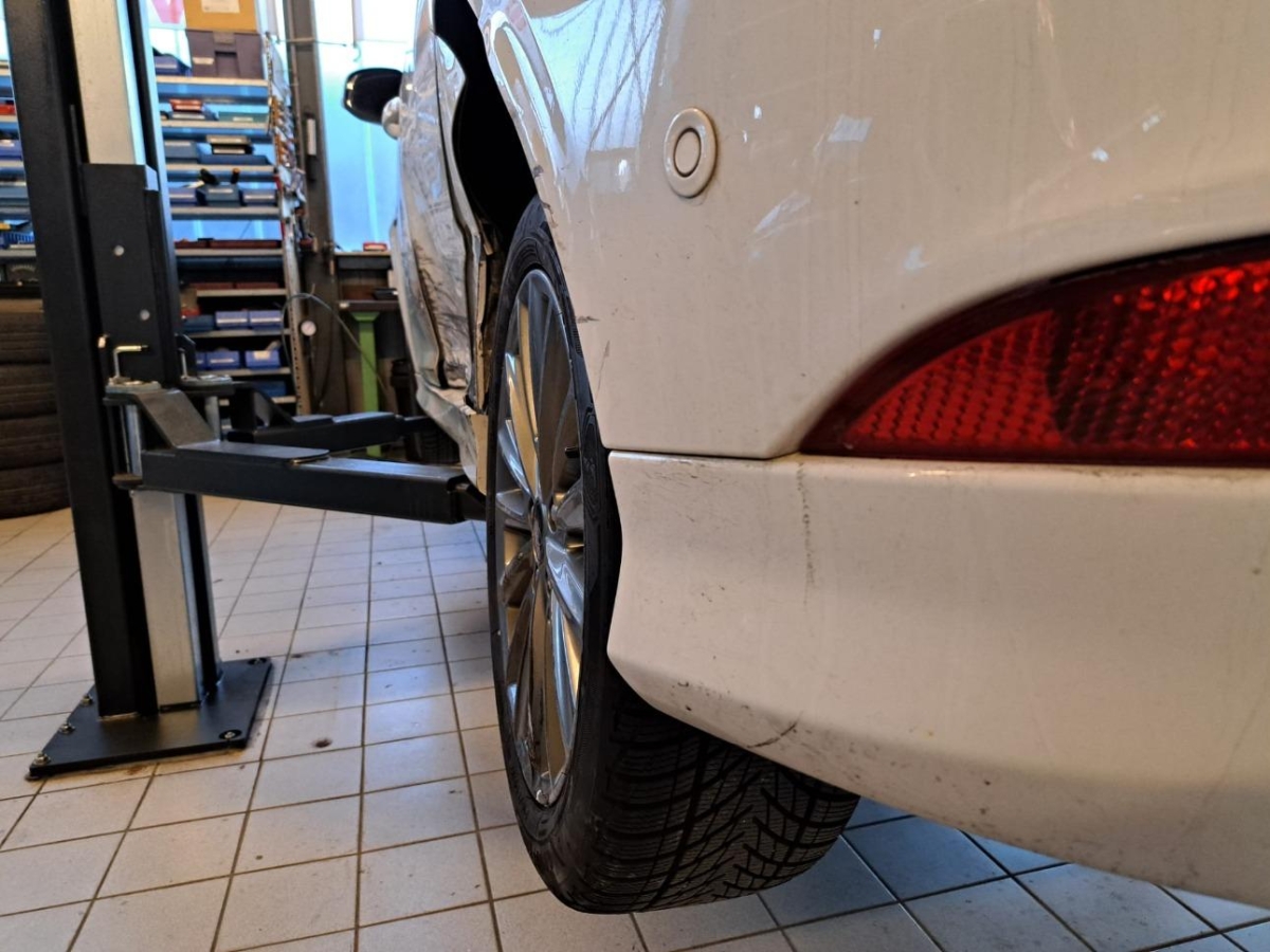 Achsträger, B-Säule, C-Säule, Hinterachse, Rad hinten links, Radaufhängung hinten links, Radhaus hinten links, Schweller links, Seitenwand links, Stossstange hinten, Türe hinten links, Türe vorne links, Türschloss