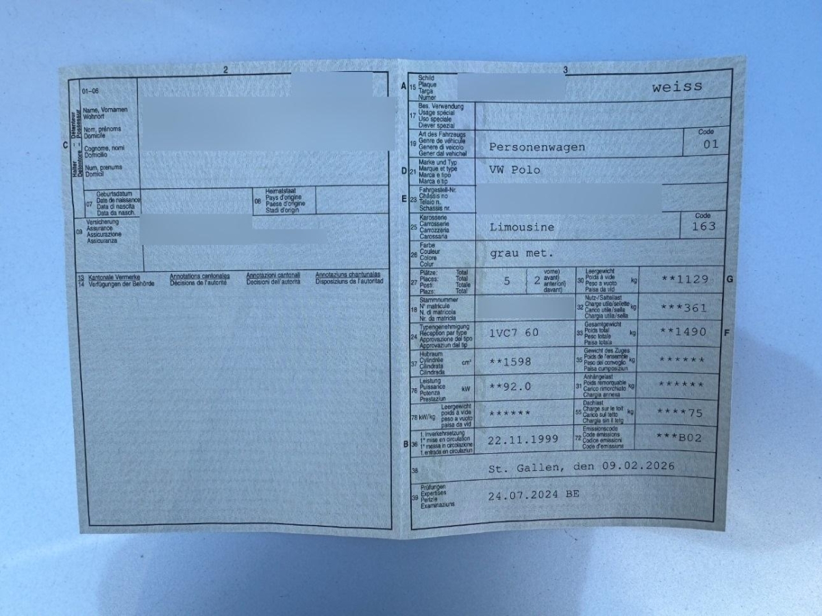 Klima: Pollenfilter (Staubfilter), Wassertemperaturanzeige, Nebelscheinwerfer, Lenkrad: Lenkrad höhenverstellbar, Teppichfussmatten vorne und hinten, Elektrische Fensterheber vorne, Zentralverriegelung, Katalysator geregelt, Seitenschutz-Zierleisten, Servolenkung, Elektronische Differentialsperre (EDS), Licht: Drittes Bremslicht, Anbauteile in Wagenfarbe, Sitze: Rücksitzlehne geteilt abklappbar, Steckdose im Kofferraum, Grün getönte Scheiben, Wegfahrsperre elektronisch, Airbag: Seitenairbags, Tageskilometerzähler, Sportsitze vorne, Scheinwerfer-Waschanlage, Cupholder vorne, Drehzahlmesser, Airbag: Airbag Fahrer und Beifahrer, Radiovorbereitung, Antenne, Entstörung und 4 LS, Scheibenwaschdüsen beheizt, Polster: Stoff-Ausstattung, Gurtstraffer vorne, Radio/Tonband mit CD-Wechsler, Stossstangen und Aussenspiegel in Wagenfarbe, Licht: Nebelschlussleuchte, Sitze: Vordersitze mit höheneinstellung, Leuchtweitenregulierung elektrisch, Heckscheiben-Wisch-/Waschanlage, Xenon-Lichtanlage, Digital Uhr, Antiblockiersystem (ABS), Laderaumabdeckung, Höhenverstellbare Gurten vorne, Scheibenwischer vorne mit Intervall, 5-Gang-Getriebe, 4 BBS-Leichtmetallfelgen 15J mit Pneu, Aussenspiegel rechts und links beheizbar und elektrisch verstellbar, Lichtwarnsummer