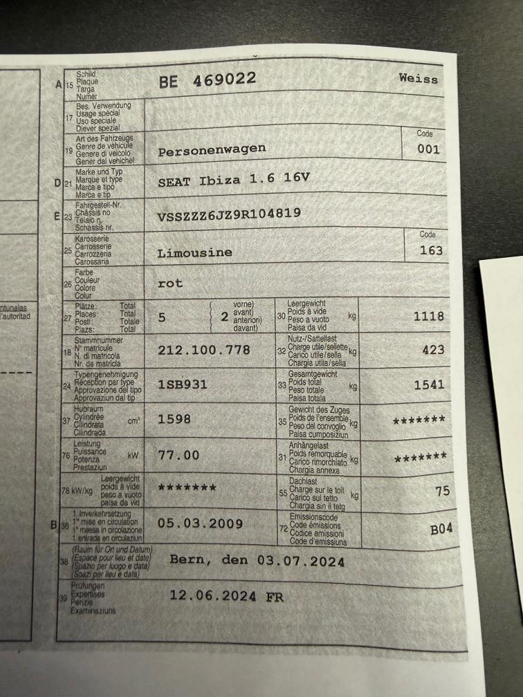 Seat Ibiza 1.6 16V Klima Zentralverriegelung Elektrische Fenster Tempomat Panoramadach Letzte MFK 12.6.2024 !! Letzter Service 6.2024 Mängel: Bremsen vorne & hinten zu ersetzen ( Eisen auf Eisen ! ) !! Tür vorne links kann von innen nicht geöffnet werden !! Spiegelverstellung vorne links defekt !! Diverse grössere Gebrauchsspuren aussen und innen !! Diverse Lackschäden !! Sitz vorne links hat ein Loch !! Kofferraumabdeckung fehlt !! Rost !! Ganz leichter Hagelschaden!! Weitere Mängel sind nicht ausgeschlossen, kein Werkstatttest !! Am Fahrzeug wurde keine Prüfung der mechanischen Teile und der Carrosserie durchgeführt! Das Risiko liegt somit vollumfänglich beim Käufer. Nach Zuschlag keine Nachverhandlungen möglich. Kein Rückgaberecht !!