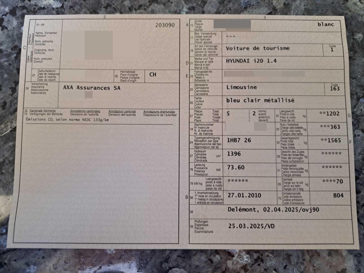 Radio/CD-Player mit MP3, Zentralverriegelung mit Fernbedienung, Katalysator geregelt, 5-Gang-Getriebe, Handschuhfach gekühlt, Polster: Stoff-Ausstattung, Türgriffe aussen in Wagenfarbe, Lenkrad: Audiofernbedienung am Lenkrad, ISOFIX Kindersitzvorrichtung, Lenkrad: Lenkrad längs- und höhenverstellbar, Höhenverstellbare Gurten vorne, 4 Leichtmetallfelgen 15J mit Pneu, Servolenkung, Wegfahrsperre elektronisch, Schalthebelknauf in Leder, Lenkrad: Lederlenkrad, Gurtkontrolle, Window-Kopfairbags, Aussentemperaturanzeige, Airbag: Seitenairbag für Fahrer und Beifahrer, Bordcomputer, Sitze: Rücksitzlehne geteilt abklappbar, Antiblockiersystem (ABS), Bremsassistent (BAS), Getönte Scheiben, Seitenairbag für Beifahrerseite deaktivierbar, Scheibenwischer vorne mit Intervall, Nebelscheinwerfer, Elektrische Fensterheber vorne, Aktive Kopfstützen, USB+AUX-Anschluss, 3-Punkt-Sicherheitsgurte auf allen Plätzen, Fahrersitz höhenverstellbar, Heckscheibenheizung, Licht: Drittes Bremslicht, Lackierung: Uni-Lackierung, Airbag: Airbag Fahrer und Beifahrer, Aussenspiegel rechts und links beheizbar und elektrisch verstellbar, Diebstahlwarnanlage, Klimaanlage, Heckscheiben-Wisch-/Waschanlage, Licht: Nebelschlussleuchte