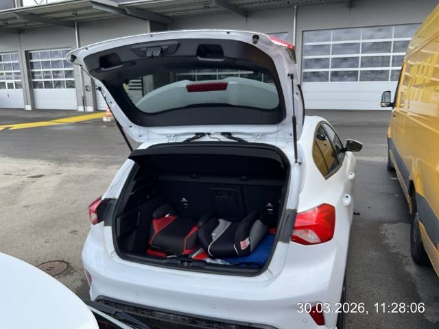3-Punkt-Sicherheitsgurte auf allen Plätzen, Abgedunkelte Seiten- und Heckscheibe, Airbag: Beifahrer deaktivierbar, Airbag: Fahrer und Beifahrer, Ambientebeleuchtung, Antiblockier-Bremssystem (ABS) mit elektronischer Bremskraftverteilung (EBD), Assist: Berganfahrassistent, Assist: Fahrspur-Assistent zusätzlich mit Fahrspurhalte-Assistent, Assist: Feststellbremse, elektrisch, mit Auto Hold-Funktion, Assist: Intelligenter Geschwindigkeitsbegrenzer mit Tempolimit-Anzeige, Assist: Park-Pilot System vorne und hinten, Assist: Post-Collision-Assist, Assist: Pre-Collision-Assist, Assist: Rückfahrkamera mit Split View-Technologie, Assist: Start-Stop-System, Assist: Tempomat, Assist: Traktionskontrolle (TCS-Traction Conrol System), Aussenspiegel in Wagenfarbe lackiert, elektrisch einstellbar, beheizbar - mit integrierten Blinkleuchten - elektrisch anklappbar und mit Umfeldbeleuchtung, Aussenspiegel zusätzlich elektrisch anklappbar mit Umfeldbeleuchtung, Body-Styling-Kit - individuelle ST-Line-Stossfänger vorn und hinten - Frontlippe und Seitenschweller in Wagenfarbe lackiert, Bordcomputer, Bremssättel rot lackiert, Dachhimmel aus Webstoff, schwarz, Dachspoiler gross, im ST-Design, Dekor: Lederschaltmanschette mit roten Ziernähten, Digitale Instrumententafel 12.3", Doppelrohr- Auspuffanlage, Drehzahlmesser, Einstiegszierleisten vorn, ST-Line-Design, Elektronisches Sicherheits- und Stabilitätsprogramm (ESP), Fahrwerk: Sportfahrwerk, Fensterheber vorn und hinten, elektrisch, mit Gesamtschliessungsfunktion, Ford Easy Fuel (Komfort-Tankverschluss und Fehlbetankungsschutz), Ford EcoCoach (Effizienzanzeige für umweltschonende Fahrweise), Ford Key Free-System (schlüsselfreies Ent/- Verriegeln) inkl. Ford Power-Startfunktion (schlüsselfreies Starten), Garantie: 2 Jahre ohne Kilometerbegrenzung (ab 1. Inv.), Garantie: 3 Jahre oder 100'000 km (ab 1. Inv.), Garantie: Garantie 12 Jahren gegen Durchrosten (ab 1. Inv.), Getriebe: 6-Gang-Getriebe, Handschuhfach, beleuchtet, Heckscheiben-Wisch-/Waschanlage, Heckscheibenheizung, ISOFIX-Halterung an den äusseren Sitzplätzen der 2. Sitzreihe inkl. zweier Top-Tether-Verankerungspunkte in den Rücksitzen, Induktive Ladestation für Mobiltelefone, Innenspiegel automatisch abblendbar, Instrumentenbeleuchtung, regelbar, Intelligentes Sicherheits-System (IPS - Intelligent Protection System) - Frontairbag für Fahrer und Beifahrer - Kopf-Schulterairbags vorn und hinten - Seitenairbag für Fahrer und Beifahrer - Sicherheitsgurtstraffer und -gurtkraftbegrenzer vorn und in der 2. Sitzreihe aussen - Warnsystem für nicht angelegten Sicherheitsgurt vorn und in der 2. Sitzreihe, Klima: Klimaanlage mit automatischer Temperaturkontrolle (2-Zonen-Klimaautomatik) - für Fahrer- und Beifahrerseite getrennt regelbar, Klima: Pollen- und Staubfilter, Kniepolster an der Mittelkonsole, mit roten Ziernähten, Lackierung: Race-Rot, Lackierung: Uni-Lackierung, Lenkrad: Lenksäule, in Höhe und Reichweite einstellbar, Lenkrad: ST-Line-Design, unten abgeflacht und mit roten Ziernähten, in Sensico Kunstleder, Licht: Bremsleuchte dritte, Licht: Gepäckraumbeleuchtung, Licht: Innenbeleuchtung vorn und hinten mit LED-Technik und Kartenleselampen vorn, Licht: LED Scheinwerfer mit integriertem LED-Tagfahrlicht, Licht: LED-Nebelscheinwerfer inkl. statischem Abbiegelicht, Licht: Nebelscheinwerfer mit Abbiegelicht, Licht: Notbremslicht (EBS), Licht: Scheinwerfer-Abblendlicht mit Ausschaltverzögerung, Licht: Scheinwerfer-Assistent mit Tag-/Nacht-Sensor, Make up-Spiegel beleuchtet für Beifahrer, Make up-Spiegel beleuchtet für Fahrer, Media: Ford SYNC 3 Light mit Applink, 8'' Touchscreen, DAB/DAB+ - 8", Media: FordPass Connect inkl. eCall, Live Traffic-Verkehrsinformation und WLAN-Hotspot, Mittelarmlehne hinten mit 2 Becherhaltern, Mittelkonsole vorn mit Getränkehalter, Ablagefächern und 12-Volt- und USB-Anschluss, MyKey, Paket: Family-Paket, Paket: Komfort-Paket, Paket: Sicht-Paket, Pedalerie mit Aluminiumauflage, Polster: Stoff-Ausstattung, Räder: 4 Leichtmetallräder 7 J x 17 5 x 2-Speichen-Y-Design, in Rock-Metallic mit 215/50 R 17 Reifen, Räder: Reifendruckkontrollsystem, Räder: Reifenreparatur-Set (Tire Fit), Räder: TPMS Reifendrucküberwachungssystem, Schalthebelknauf in Leder, Scheibenwischer mit Regensensor, Selektiver Fahrmodus-Schalter, Servolenkung, elektro-mechanisch (EPAS-Electric Power Assisted Steering), Sitze: 2 Kopfstützen vorn und 3 Kopfstützen hinten, höhenverstellbar, Sitze: Beifahrersitz, 2-fach einstellbar, Sitze: Einstellbare Lendenwirbelstütze für den Fahrer und Beifahrer, Sitze: Kartennetz an Fahrer- und Beifahrersitzrückenlehne, Sitze: Kopfstützen vorne höhenverstellbar, Sitze: Rücksitzlehne umklappbar, 60 : 40 geteilt zusätzlich mit Durchladefunktion für Skier, Sitze: Sportsitze vorne, Sonnenblende Fahrer und Beifahrerseite mit Spiegel, Teppichfussmatten vorn und hinten, Velours und mit roten Ziernähten, Tür-Kindersicherung, elektrisch, Türen: Elektrische Heckklappe, sensorgesteuert, Umrandung der Seitenscheiben in Schwarz, Warnsystem für nicht angelegten Sicherheitsgurt in der 1.,2. und 3. Sitzreihe (wenn vorhanden), Wegfahrsperre elektronisch, Zentralverriegelung mit Fernbedienung