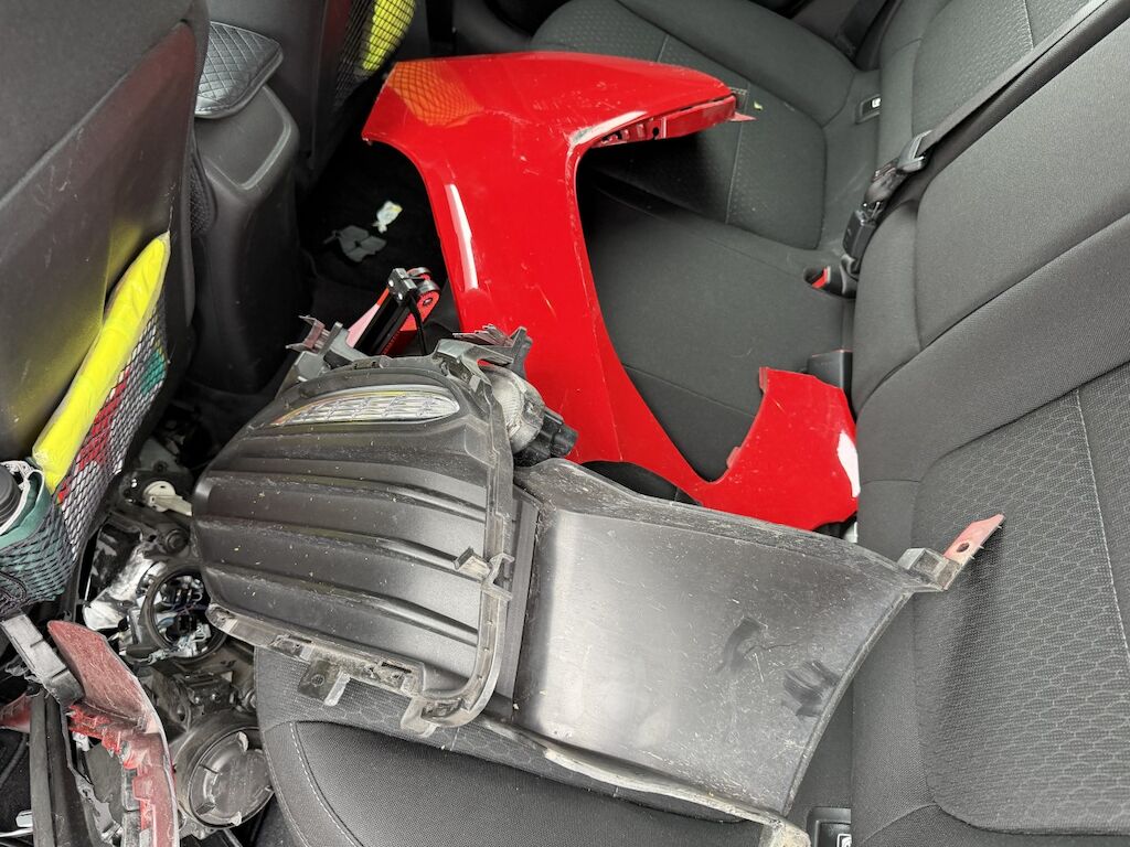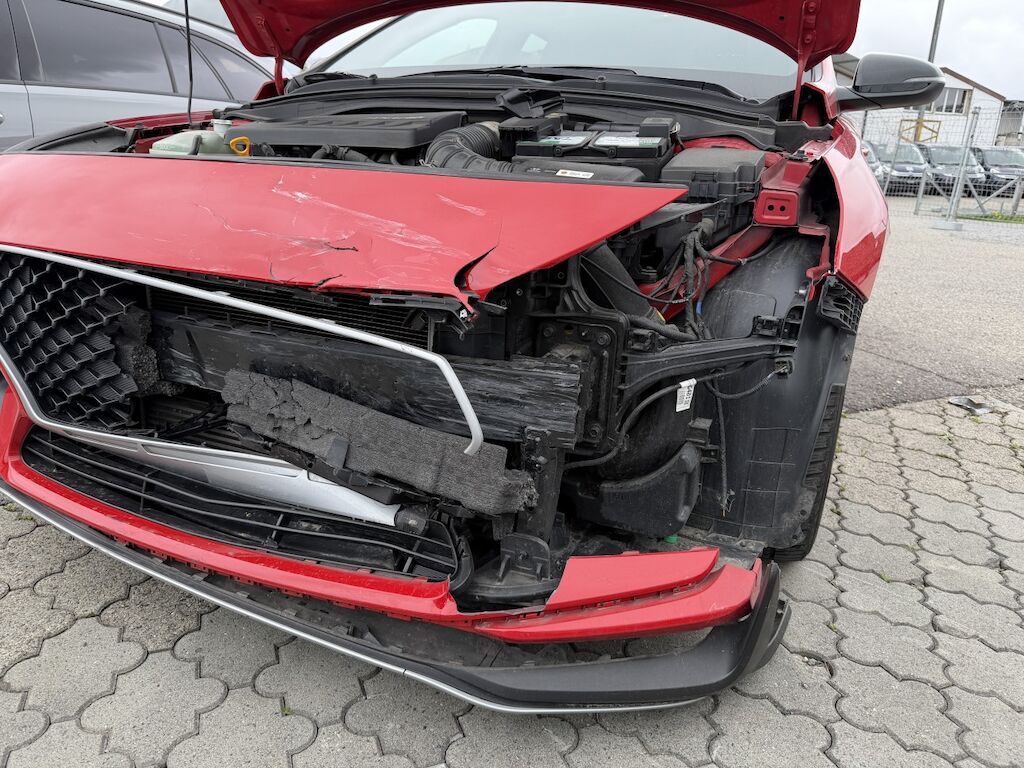 Frontschaden links: Motor läuft, Fz ist nicht fahrbar. Kühlerpaket eingedrückt, Kühlergrill inkl. Zierleisten beschädigt, Scheinwerfer defekt, Tagfahrleuchte inkl. Gitter gebrochen, STS inkl. Spoiler defekt, Kabelstrang ausgerissen, Motorhaube deformiert, Kotflügel deformiert, Kotflügel vr verschoben, Motorenabdeckung beschädigt, Dachrahmen l&r verkratzt, Aufzählung nicht abschliessend. Motor Getriebe Vorderachse Hinterachse Airbags ausgelöst: 0 unbekannt ( Abfallcode 16.01.04ak )