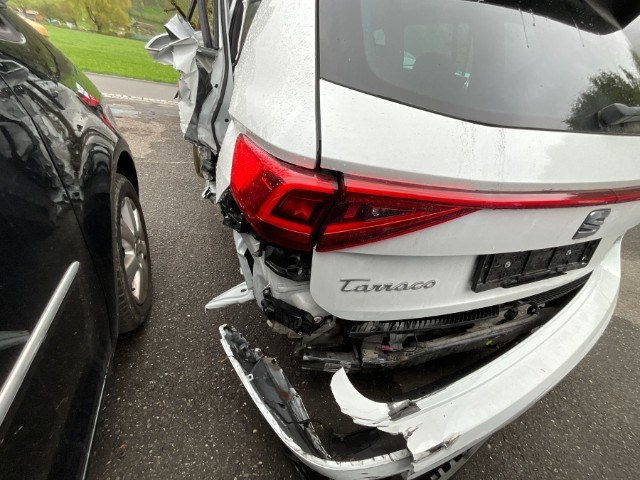 Linke Seite beschädigt. Anstoss links im Bereich der B-Säule. Anstoss links im Bereich der C-Säule. Anstoss links im Bereich der D-Säule.