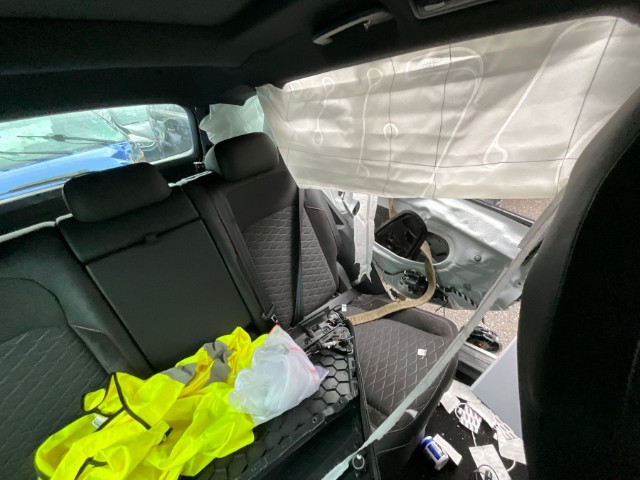 Armaturenbrett ist beschädigt. Gurtstraffer ausgelöst. Gurtstraffer vorne ausgelöst. Gurtstraffer hinten ausgelöst. Dachhimmel gerissen. Innenraum ungepflegt. Sitz vorne links defekt. Starke Verschmutzung im Innenraum. Tierhaare und Geruch im Fahrzeug
