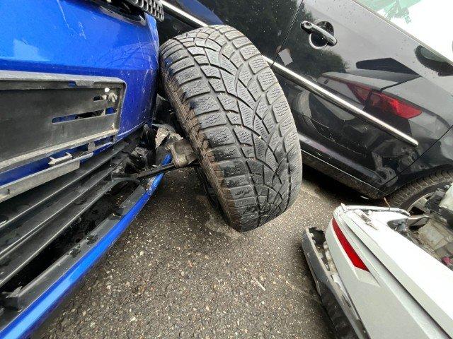 Vorderachse ist beschädigt. Hinterachse links beschädigt. Risiko Lenkung. Motoraufhängung/Aggregateträger ist beschädigt.