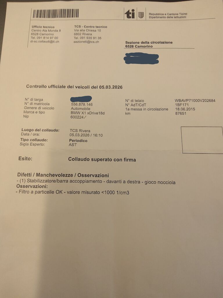 Non è stata effettuata alcuna ispezione tecnica (prova in officina) Piccoli segni di usura carrozzeria/verniciatura Bollo cofano motore Specchio SX picchiato leggermente sulla cornice Piccolo danno paraurti anteriore DX Cerchi ruota rovinati sul bordo Collaudo con firma senza riparazione Motor Getriebe Vorderachse Hinterachse Airbags ausgelöst: 0 Nein ( Abfallcode 16.01.04ak )