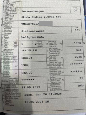 Airbag Fahrer und Beifahrerseite Sitzheizung vorne Elektrische Fensterheber vorne + hinten Mittelarmlehne vorne Mittelarmlehne hinten 3. Kopfstütze hinten Reifendruck-Kontrollsystem RDK Heckscheibenwischer Deaktivierung Beifahrerairbag Kopf und Seitenairbag vorne Park-Distanz-Sensor vorne + hinten Fussmatten vorne und hinten Aussenspiegel elektrisch verstellbar/ heizbar und anklappbar Fussraumbeleuchtung Scheinwerfer Reinigungsanlage Dachreling schwarz Ablagefach unter den Vordersitzen Lichtassistentsystem (Coming- und Leaving Home Funktion) Multifunktionsanzeige Maxi-DOT Knieairbag Fahrer Multifunktionslenkrad für Radio und Telefon Netzset im Kofferraum Keyless Schliess- und Startsystem HSA Berganfahrassistent Reifen-Pannenset Zwei Zonen-Klimaanlage Climatronic Lendenwirbelstütze Fahrer- und Beifahrersitz Geschwindigkeitsregelanlage Sitzbezüge in Stoff/ Leder Adaptive Geschwindigkeitsregelung ACC Licht- und Regensensor/ Innensp. aut. abblendbar Start + Stopp Funktion Pedale in Edelstahl ESP/ ABS/ EBV/ MSR/ ASR/ EDS/ HBA/ DSR LED Rückleuchten Einstiegsleisten Keine Gewähr auf die Angaben der Serienausstattungen Digitaler Radioempfang DAB+ Front Assist (Umfeldüberwachungssystem) Cargoelemente im Kofferraum SmartLink Navigationssystem Amundsen Leichtmetallfelgen 18" Triton LED-Scheinwerfer + LED-Nebelscheinwerfer mit Corner Funktion Care Connect 1 Jahr