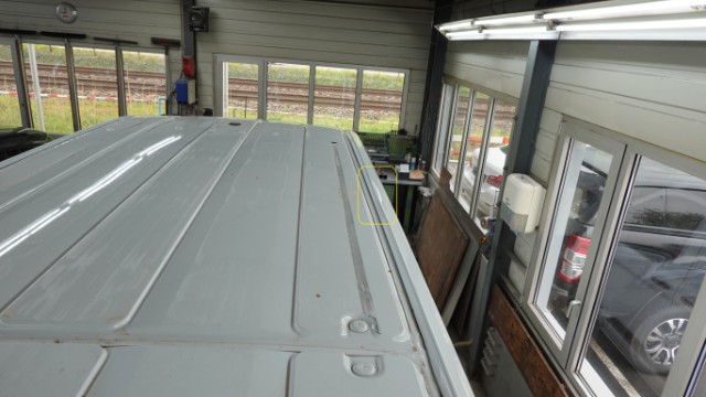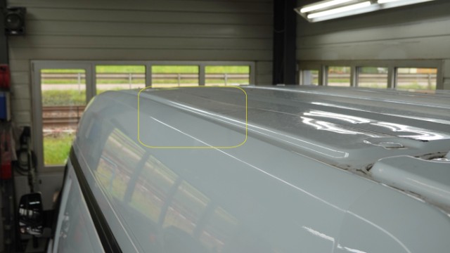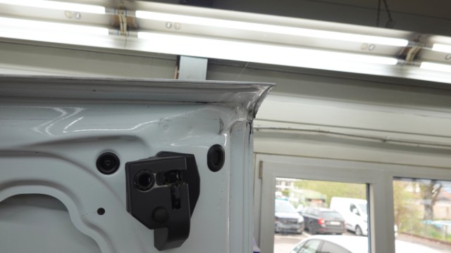 Beschädigung Dachblech eingedellt und verformt. Hinteres Dachblech eingedellt und verformt. Dachrahmen links und rechts eingedellt und verformt. Dach-Querträger 1 und 2 gestaucht. Hecktüre links und rechts im oberen Bereich eingedellt, verformt und abgerissen. Dachantenne, Antennenfuss und Zusatzantenne gerissen. Zusatzbremsleuchte oben gebrochen.