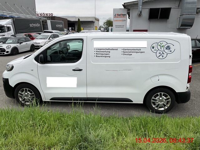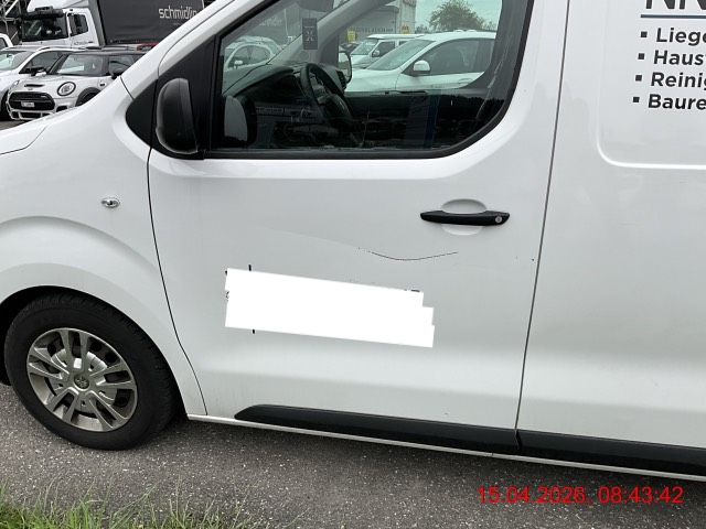 Seitentür vorne rechts, Schiebetür rechts, Seitenwand rechts deformiert und zerkratzt. / 2. Schaden: Seitentür vorne links, Seitenwand links zerkratzt. / Vorbestandene Schäden: Stossfänger vorne zerkratzt. Seitentür links zerkratzt. Seitenwand links zerkratzt
