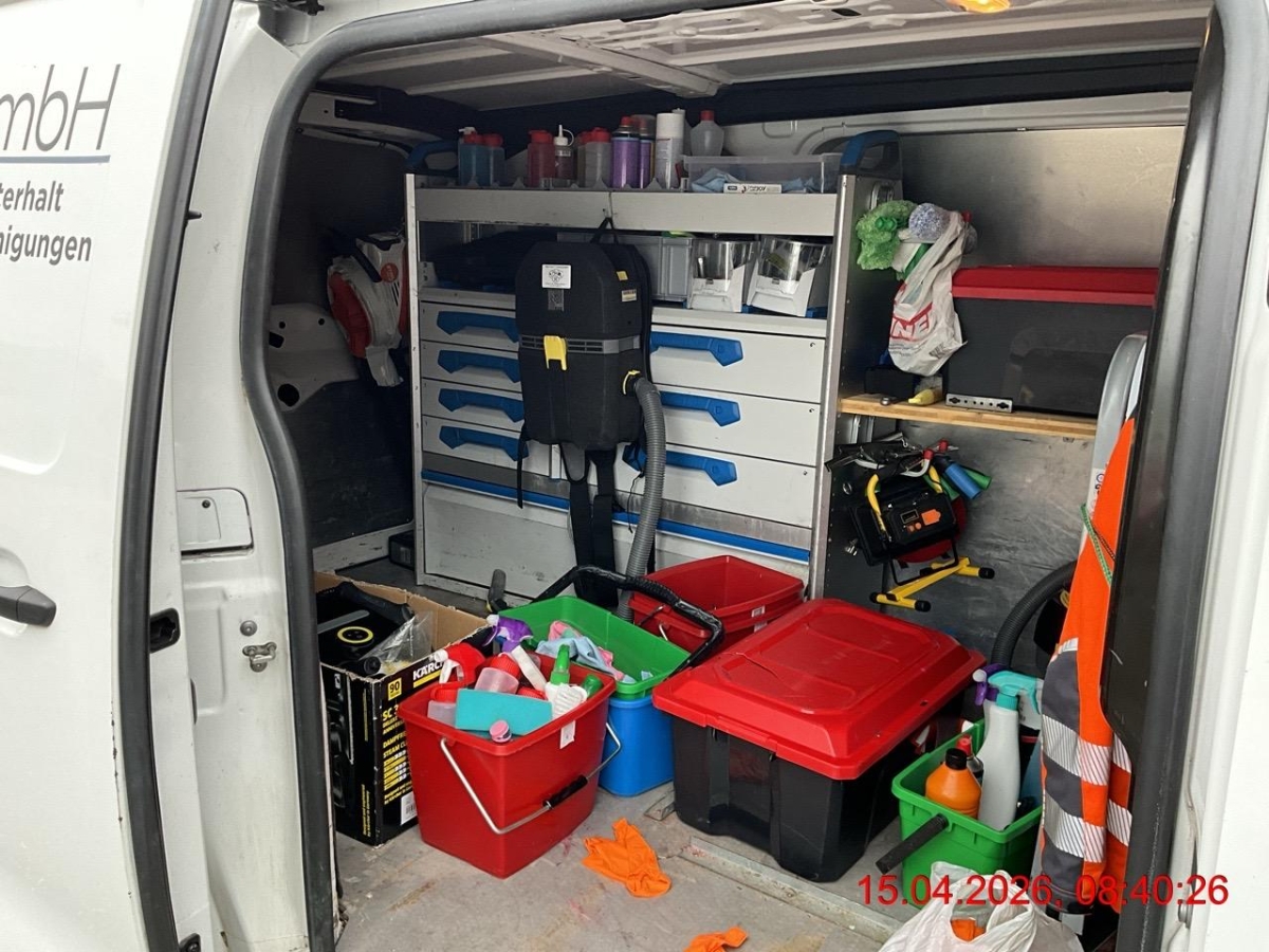 Restwert-Ermittlung, Fahrzeugzustand: Normal Schadenart: Kollision Zubehör kann demontiert werden Firmenbeschriftungen müssen vom Käufer entfernt werden Gestelle und Werkzeuge etc. im Laderaum sind NICHT Teil der Auktion und werden ausgebaut