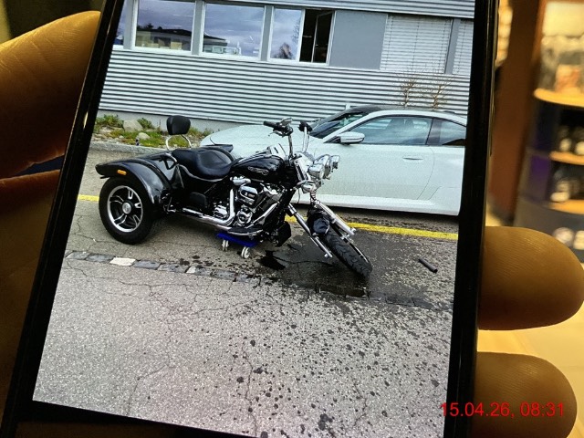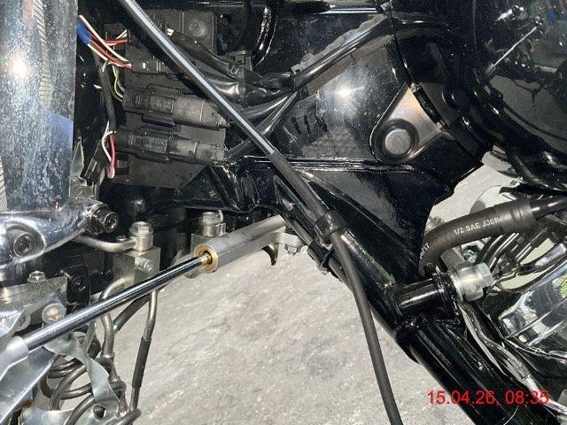 Front mit Gabel stark beschädigt abgerissen. Felge vorne krumm, Oelkühler beschädigt. Motor läuft normal. Achtung: hier besteht ein erhebliches Risiko auf eine Beschädigung des Rahmens bei der Lenkkopfaufnahme, Lenklagerrohr!! / Vorbestandene Schäden: Gebrauchsspuren