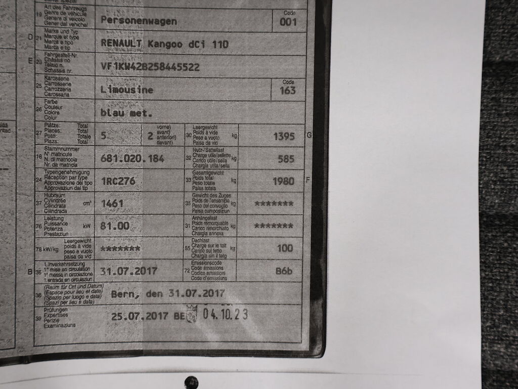 Keine technische Prüfung (Werkstatttest) vorgenommen Diverse Schäden an Karosserie/Lack. Kratzer in Seitenscheibe hinten links. Fahrzeug ab Platz, ohne Garantie und Aufbereitung. DPF/FAP Filter nicht kontrolliert Motor Getriebe Vorderachse Hinterachse Airbags ausgelöst: 0 unbekannt ( Abfallcode 16.01.04ak )