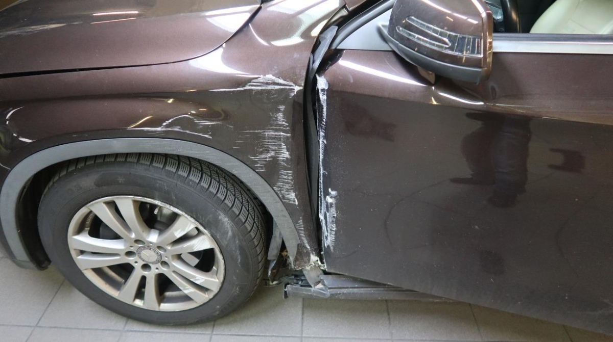 A-Säule, Aussenspiegel links, B-Säule, Federbein vorne links, Interieur verschmutzt, Kotflügel links, Kotflügel rechts, Lenkung, Motorhaube, Rad vorne links, Radaufhängung vorne links, Schweller links, Seite links, Seite rechts, Seitenwand links, Stosstange vorne, Türe hinten links, Türe hinten rechts, Türe vorne links, Türe vorne rechts