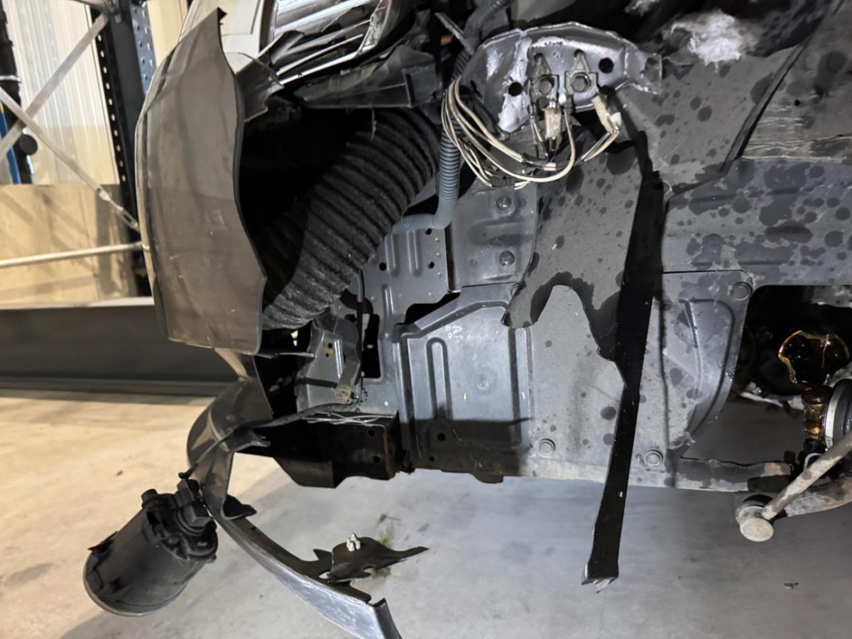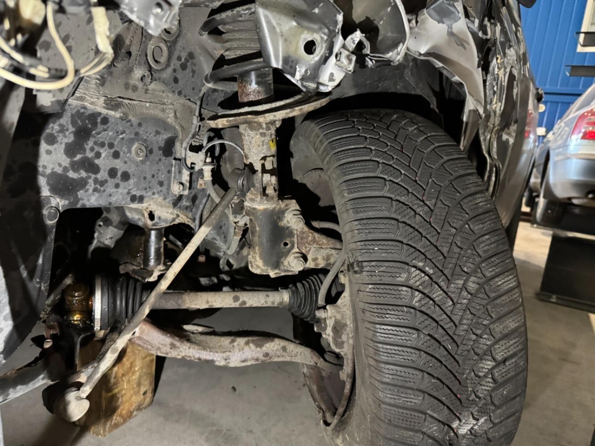 A-Säule, Achsträger, Airbag ausgelöst, Antriebswelle, Armaturenbrett, Aussenspiegel links, Federbein vorne links, Front, Front links, Frontblech, Gurtstraffer ausgelöst, Klimakühler, Kotflügel links, Kühler, Kühlgitter, Lenkung, Längsträger vorne links, Motorhaube, Rad vorne links, Radhaus vorne links, Scheinwerfer links, Stosstange vorne, Türe hinten links, Türe vorne links, Vorderachse