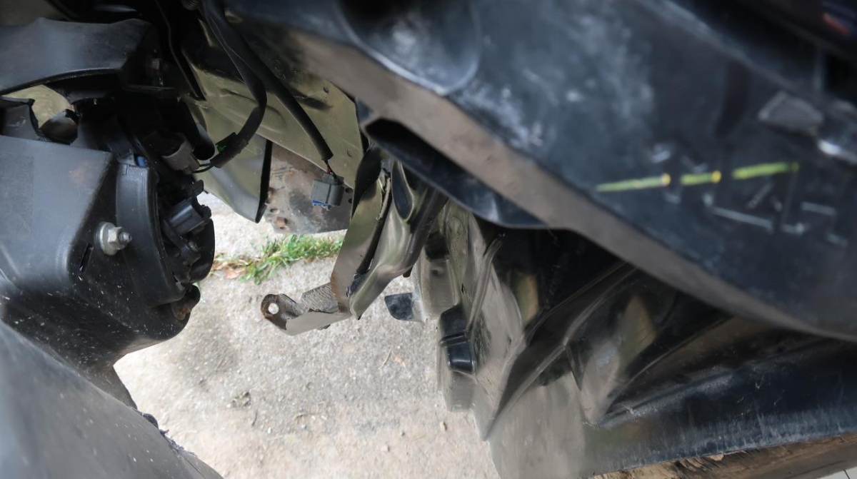 Antrieb, Diverse Gebrauchspuren, Federbein vorne links, Front links, Frontblech, Interieur, Interieur verschmutzt, Kotflügel links, Kühlgitter, Lenkung, Längsträger vorne links, Motorhaube, Querträger, Rad vorne links, Radaufhängung vorne links, Scheinwerfer links, Schlossträger, Stosstange vorne, Vorderachse