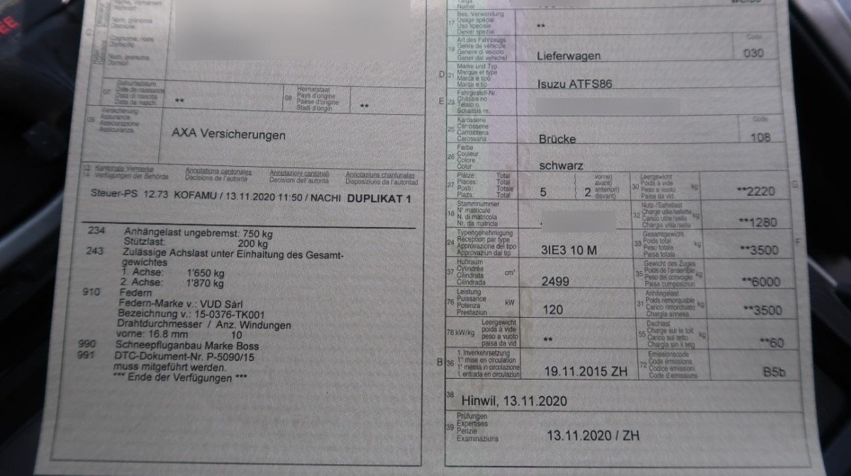 Allradantrieb zuschaltbar, Wegfahrsperre elektronisch, Nebelschlussleuchte, Lenkrad höhenverstellbar, Seitenairbag für Fahrer und Beifahrer, Wassertemperaturanzeige, Aussenspiegel elektrisch verstellbar, Zusätzliches Fernlicht, Trittbrett seitlich, Polster: Stoff-Ausstattung, Multifunktionsanzeige, Fahrersitz höhenverstellbar, Antiblockiersystem (ABS), Radio/CD MP3 mit Bluetooth + Audio Connection Box, Multifunktionslenkrad in Leder, Triebwerk-Unterfahrschutz, Multimedia-Schnittstelle für iPod/iPhone, Licht: Tagfahrlicht, Window-Kopfairbags vorne und hinten, Tankdeckel-Entriegelung von innen, Airbag: Airbag Fahrer und Beifahrer, Tempomat, Servolenkung geschwindigkeitsabhängig, Leuchtweitenregulierung von innen, Heckscheibenheizung, Elektronisches Stabilitäts-Programm (ESP), Cupholder vorne und hinten, Innenspiegel abblendbar, Getönte Scheiben, Elektronische Traktionskontrolle (ASR/TCS), Partikelfilter und Oxydationskatalysator, Beleuchtetes und abschliessbares Handschuhfach, Zentralverriegelung mit Fernbedienung, Radiovorbereitung, Antenne, Entstörung und 6 LS, Pollenfilter (Staubfilter), Scheibenwischer vorne mit Intervall, Drehzahlmesser, Seitenaufprall-Schutzsystem, Digital Uhr, 5-Stufen-Automat sequentiell, LED Heckleuchten, Reifenreparatur-Set (Tire Fit), Assist: Bremsassistent (BAS), Brillenfach, Lichtwarnsummer, Mittelarmlehne vorne, Licht: Nebelscheinwerfer, Elektrische Fensterheber vorne + hinten, Klimatisierungsautomatik, Stossstangen hinten, Edelstahl poliert, 12-Volt-Steckdose vorne, Drittes Bremslicht, Tageskilometerzähler, Leichtmetallfelgen 17J