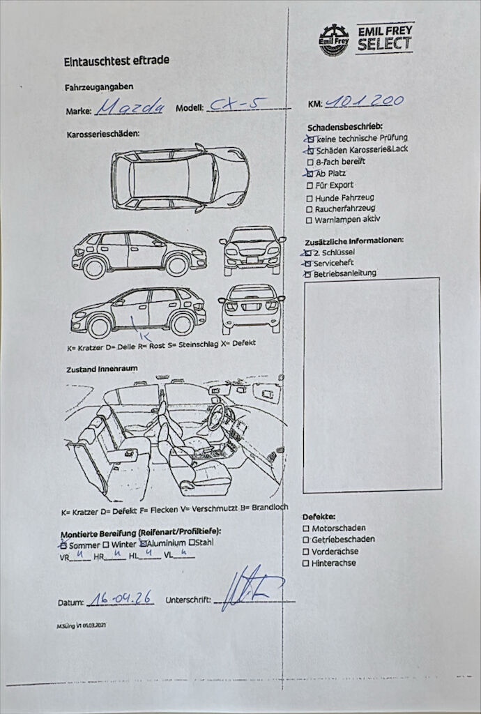 Keine technische Prüfung (Werkstatttest) vorgenommen Diverse Schäden an Karosserie/Lack. Fahrzeug ab Platz, ohne Garantie und Aufbereitung. Motor Getriebe Vorderachse Hinterachse Airbags ausgelöst: 0 unbekannt ( Abfallcode 16.01.04ak )