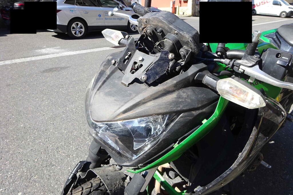 Guidon, rétro, réservoir, fourche, garde-boue, phare, carénage, séleécteur de vitesse et lévier endommagés Motor Getriebe Vorderachse Hinterachse Airbags ausgelöst: 0 unbekannt ( Abfallcode 16.01.04ak )