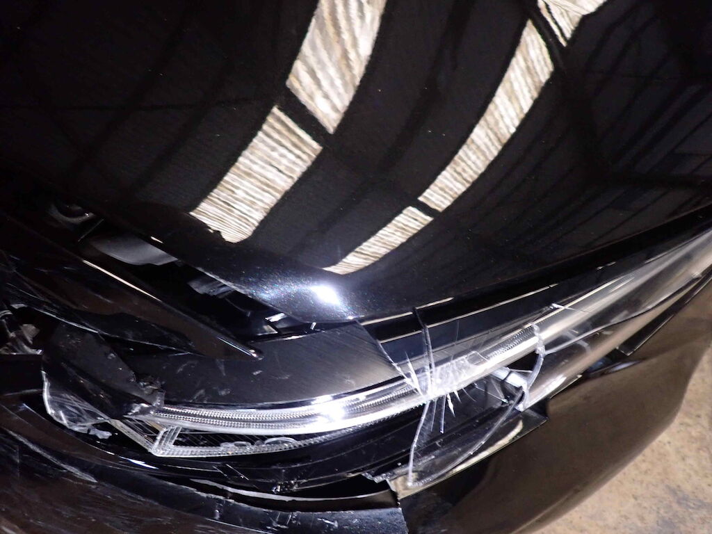 Stossfänger vorne, Scheinwerfer rechts, Kotflügel rechts und Motorhaube rechts eingedrückt; Felge, Reifen und Radaufhängung vorne rechts beschädigt; Reifen und Felge hinten rechts beschädigt; Türe vorne und hinten links Kratzer Motor Getriebe Vorderachse Hinterachse Airbags ausgelöst: 0 unbekannt ( Abfallcode 16.01.04ak )