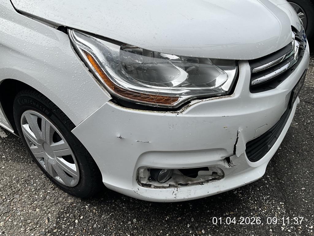 Beschreibung der Schäden: Front rechts eingedrückt; Vorbestandene Schäden: Seite rechts: Türe vorne rechts unten stark eingedrückt; Hinten mitte: Stossfänger hinten rechts leicht zerkratzt;