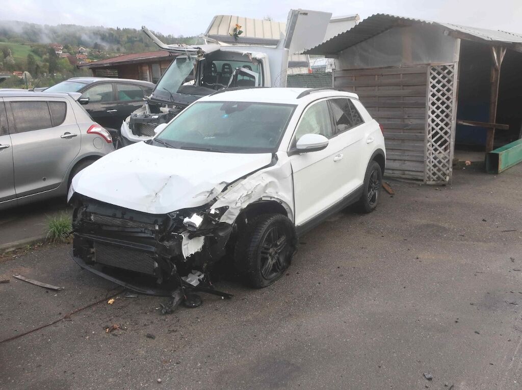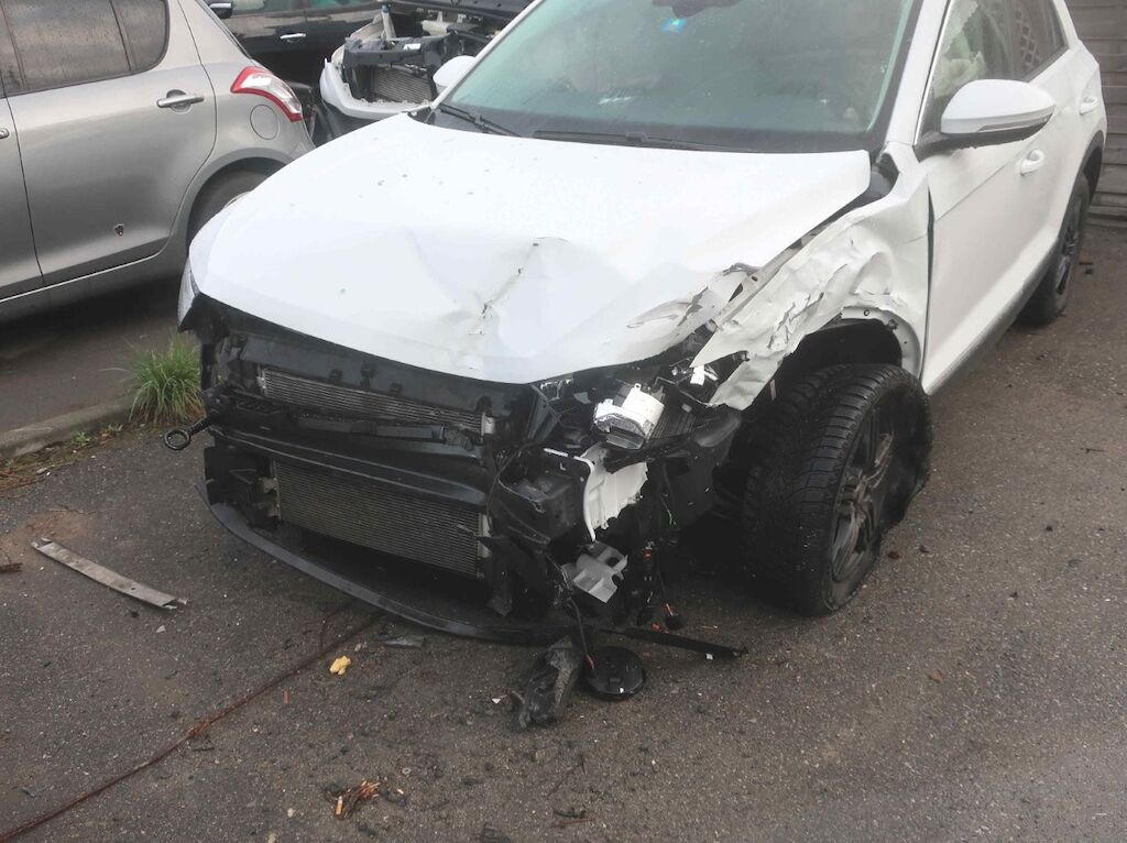 Toute la partie frontale, le train avant gauche et la porte avant droite sont endommagés. Les airbags frontaux et latéraux sont déployés. Motor Getriebe Vorderachse Hinterachse Airbags ausgelöst: 4 unbekannt ( Abfallcode 16.01.04ak )
