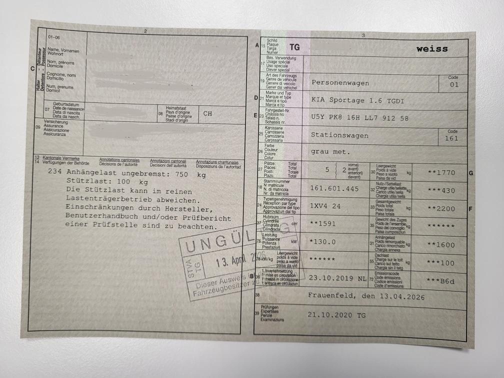 KIa Sportage 1.6 TGDI, Fahrzeug ist fahrbereit, muss innen etwas gereinigt werden. MFK ist fällig. 4 Alu-Sommerräder mit guten Reifen, 4 Alu-Winterräder mit fast neuen Reifen (montiert/Beiblatt vorhanden). Türe hi.re. hat Kratzer und Beule (siehe Foto), Türe hi.li hat Kratzer (polieren und austupfen). Anhängekupplung abnehmbar îm Fahrzeug. Servicebuch vorhanden. Es wurde kein Eintauschtest oder techn. Untersuchung ausgeführt!