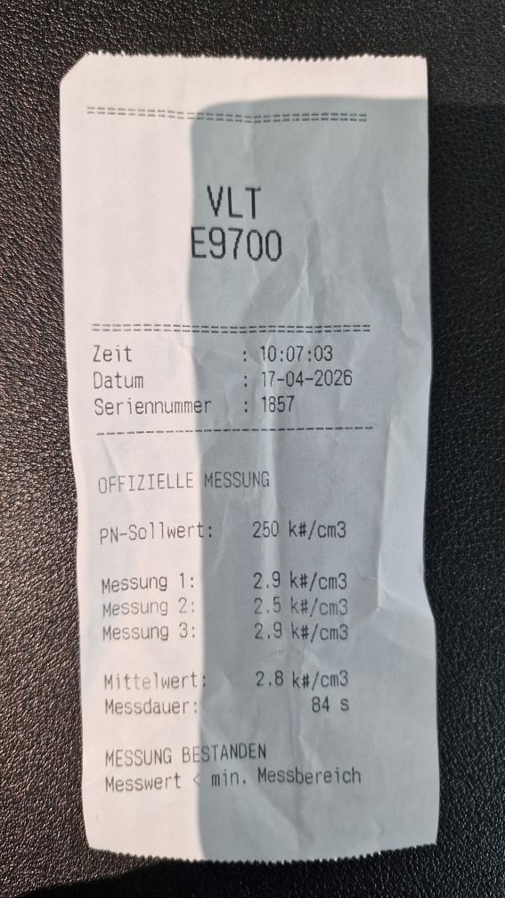 Dieselpartikelfiltertest wurde erfolgreich durchgeführt (Schriftlicher Ausdruck ist vorhanden).