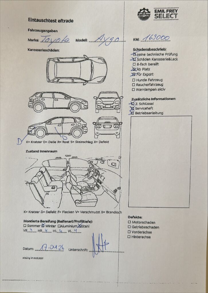 Keine technische Prüfung (Werkstatttest) vorgenommen Diverse Schäden an Karosserie/Lack. Fahrzeug ab Platz, ohne Garantie und Aufbereitung. Motor Getriebe Vorderachse Hinterachse Airbags ausgelöst: 0 unbekannt ( Abfallcode 16.01.04ak )