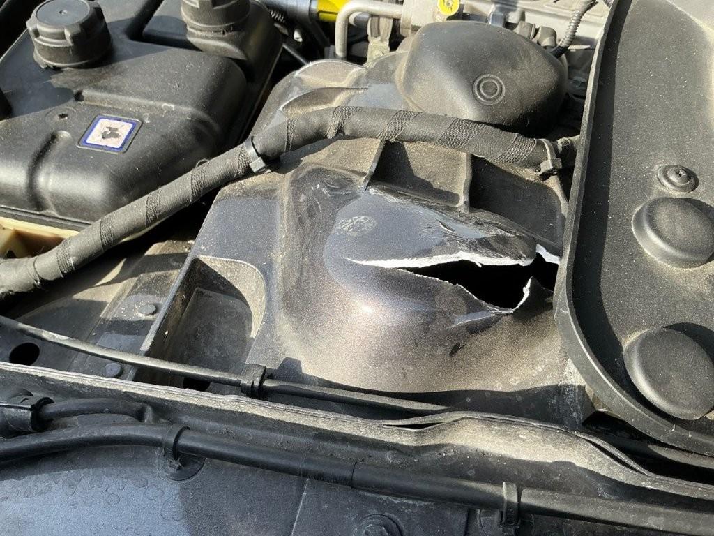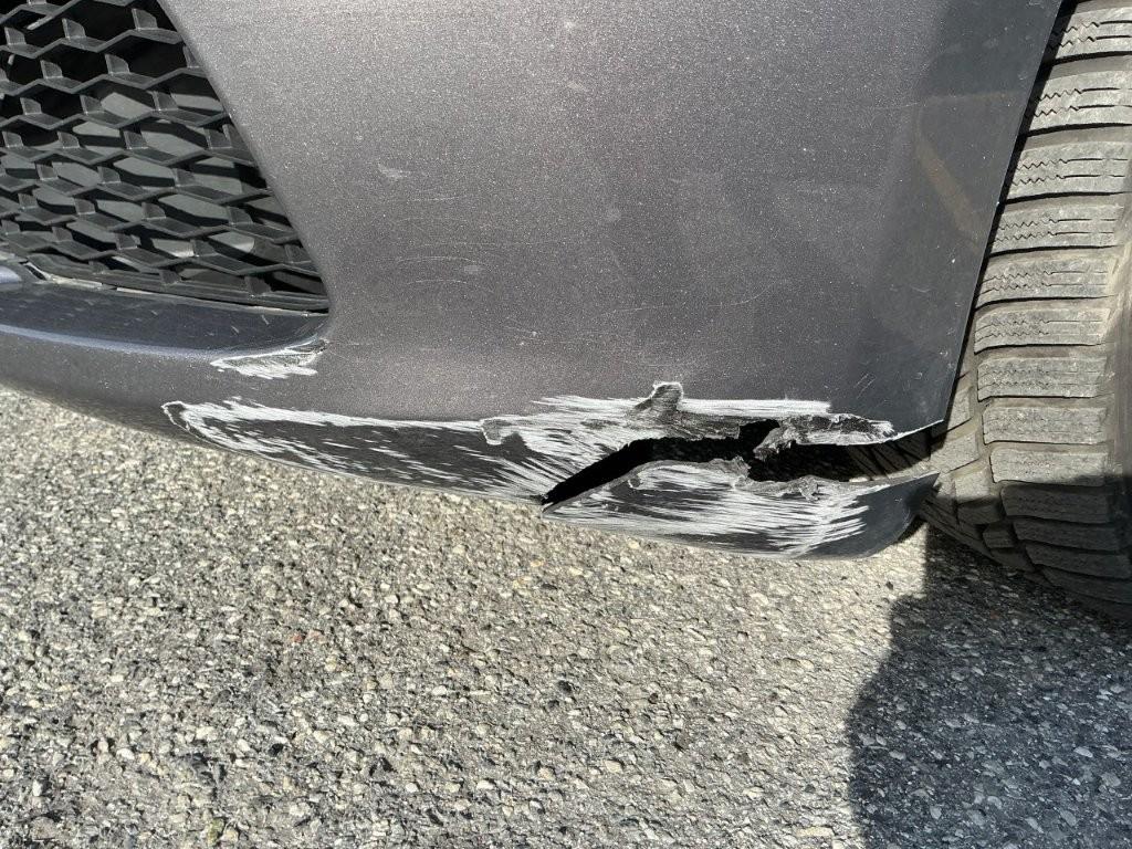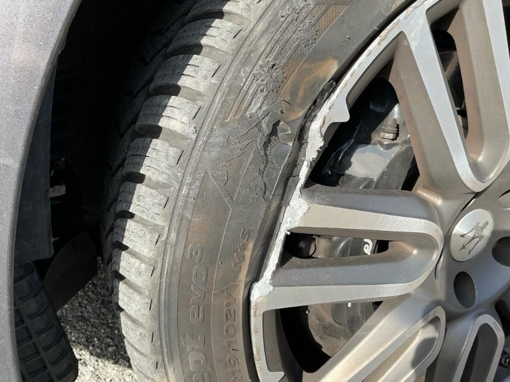 Heurté un trottoir : Suspension et direction avant gauche faussées, jante avant gauche cassée et pneu percé, pare-chocs avant, pare-boue avant et grille avant gauche cassés, logement amortisseur avant gauche déchiré, pied avant gauche griffé - LISTE NON EXHAUSTIVE / Préexistants : Bosses sur toit et traces d'utilisation