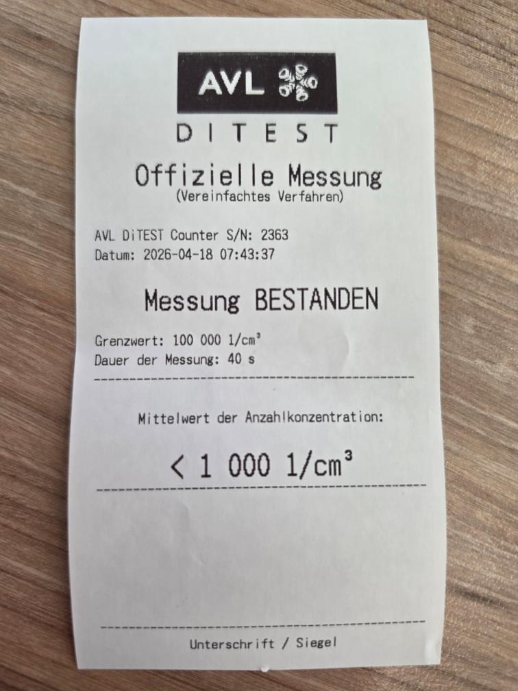 Dieselpartikelfiltertest wurde erfolgreich durchgeführt (Schriftlicher Ausdruck ist vorhanden).