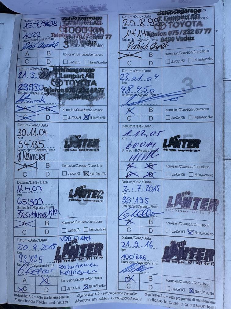 + Corolla 4x4 aus zweiter Hand + garantierte 135'000km + Gute Basis + Reparierter Rost + Fahrzeug stammt aus Privatbesitz + Radlager hinten links blockiert (bedingt fahrbar, sollte verladen werden) + 2.Schlüssel sollte vorhanden sein + Eventuell 8 fach vorhanden